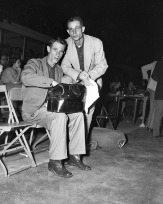 Delmer Brown and Elmer Brown, twin basketball trainers of TCU and Baylor basketball teams respectively.