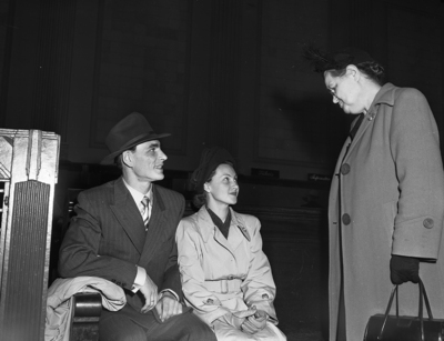Mr. and Mrs. Helmars Zarins, displaced Latvians, are shown after they arrived in Fort Worth. They were being sponsored in this county by Mr. and Mrs. W. W. Slaughter of 908 Dorothy Lane.