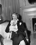Mrs. Bruce King of New York City, holding her pet poodle, Nicky, is the guest of Mr. and Mrs. Hugh Weaver, 3520 Dorothy Lane, N., came for the Stroud-Herbert wedding.