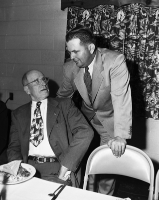 At the Avondale Community Club are J. Kirby Ellis, seated, chatting with John C. Thompson. The club sponsors a monthly dinner meeting.
