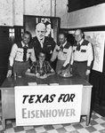 Fort Worth Civitans visited the Denison headquarters of Eisenhower-for-President during a luncheon stop while publicizing the Southwestern Exposition and Fat Stock Show. Civitans signing up with Mrs. A. A. Parker are, left to right, Joseph S. Scudiero, Jack Panter and R. C. Stewart. General Eisenhower was born in Denison.
