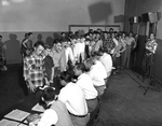 Youthful boxers crowd the registration line signing up for the high school class of the Fort Worth regional Golden Gloves. Schoolboys were weighed and examined and will be ready for action on the opening program at Will Rogers Memorial Coliseum. Published in Fort Worth Star-Telegram morning edition January 17, 1952.