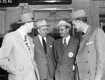 L. C. Mersfelder, third from left, vice president of the Continental National Bank, is welcomed to Dallas by Banker James C. Dycus, president of the Oak Cliff Chamber of Commerce, at left; James C. Anderson, president of American National Bank of Oak Cliff, and Charles E. Watson, right of the Dallas Power and Light Company. Published in Fort Worth Star-Telegram morning edition January 19, 1952.