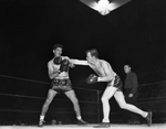 Wesley McDonald, left, staged a rally, knocked out Ken Taylor to gain the finals opposite Carswell's Sergeant Jack Barron. This is McDonald's first year in the open class of the tournament. Published in Fort Worth Star-Telegram evening edition January 21, 1952.