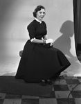 Miss Nell Jane Sosebee, daughter of Mr. and Mrs. William Harvey Sosebee, is shown wearing a long dress while seated on the chair. She was engaged to be married to First Lieutenant John Olin Bates, the couple would be wed at Fort Benning in early February.