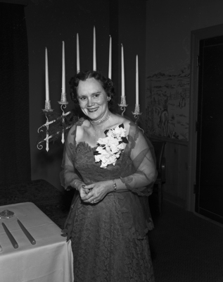 Mrs. W. H. Dickenson, above, was installed as president of the Communication Club at its annual installation dinner at Hotel Texas.