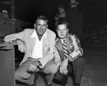 Shown are two officials of the Golden Gloves, they are left to right, Warren Connelley and J. C. Robison. They are both shown in a crouching position as they pose for the camera. Published in Fort Worth Star-Telegram evening edition January 19, 1952.