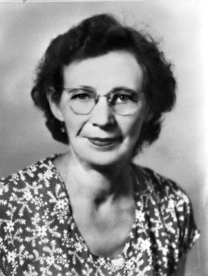 Copy of a photo of Mrs. Emma Hunnicutt, wearing dress and glasses