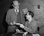 Tommy Taggart writes his boss a poll tax receipt in the lobby of the T&P Building, the 875th he had issued. Payer was J. A. Murrell, T&P Building engineer.