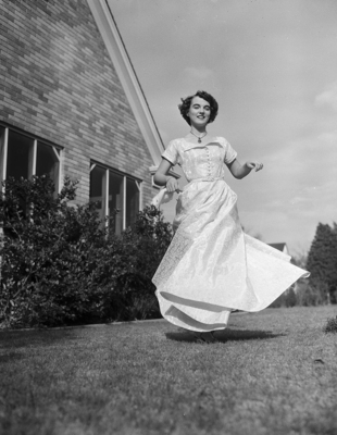"And all around I heard you pass, like ladies' skirts across the grass," says the poem. Here Gail, daughter of Mr. Armour B. Hann and Mrs. Gussie Hann, of 2816 Sixth Avenue, was inspired by the March winds.