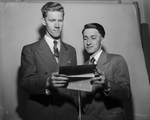 Larry Alland of 1610 Belmont, Texas Christian University (TCU) senior, left, and Sargent Charles McLain, chairman of the Central "Call" committee, are shown scanning their plans for observance at Fort Worth of Youth Week. Observance of Youth Week throughout the nation is sponsored by the United Christian Youth Movement, yout agency of the National Council of the Churches of Christ which represent 38 Protestatn denominations.