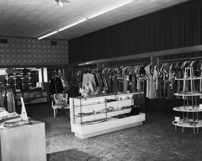 Interior view of David B. Mindlin's suburban store located at 2609 West Berry, which had women's sportswear along with casual clothes and featured handbags, lingerie, hosiery and costume jewelry.