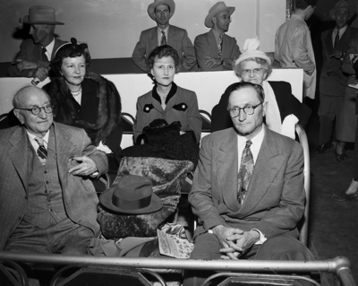 Mrs. C. E. Shankle, back left, had as her guests at the opening night of the rodeo her parents, Dr. J. H. McCracken back right; and her sister, Mrs. W. L. Elders, back center, and Mr. Elders, front right, all of Mineral Wells. Published in Fort Worth Star-Telegram evening edition January 28, 1952.