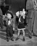 Holding on to their cowboy hats to fight a brisk wind were Donna and Jimmy Lewis, children of Mr. and Mrs. Billy G. Lewis. Published in Fort Worth Star-Telegram morning edition January 26, 1952.