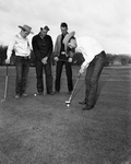 Image taken at the Rockwood golf course shows four men who were showing in the Southwestern Exposition and Fat Stock Show rodeo held at the Will Rogers Memorial Coliseum arena taking a break from the event to enjoy their morning. Left to right, Buck Boyce, from Twin Falls, Idaho; Dan Poor, of Newhall, California; Dave Campbell, of Las Vegas, Nevada; and Bill Linderman, of Red Lodge, Montana. Published in the morning edition, January 27, 1952.