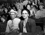 Watching cowboys show their wares at the Saturday afternoon rodeo performance of the Southwestern Exposition and Fat Stock Show at Will Rogers Coliseum are; Mr. and Mrs. L. E. Boley, part of the delegation from Jacksboro for their special day at the Stock Show. Published in Fort Worth Star-Telegram morning edition January 27, 1952.