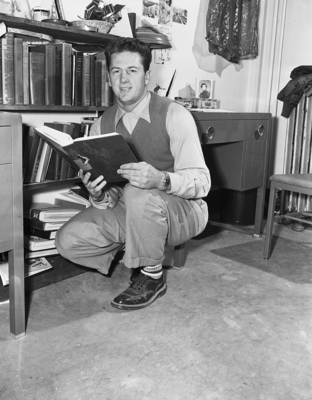 Grayford Campbell, regional Golden Gloves winner, looking at books. Puts Gloves foes away in a hurry.