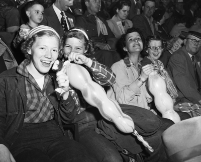 Martha Colwick, Carmileta Dossman and Jo Denton, left to right, were part of the Clifton delegation whooping it up at the Southwestern Exposition and Fat Stock Show rodeo. Published in Fort Worth Star-Telegram morning edition January 30, 1952.