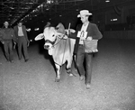 Southwestern Exposition and Fat Stock Show's 1952 Brahman bull champion is shown here. He's JDH Bertram de Manso, owned by J. D. Hudgins of Hungerford. With the animal is Larue Douglas, a Hudgins Ranch herdsman. Published in Fort Worth Star-Telegram evening edition January 29, 1952.