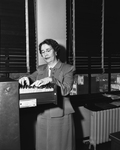 Miss Elizabeth Linebarger, oil company employee. She is shown going through a filing cabinet.