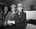 Interested spectators at matinee performance of the rodeo and horse show at the Southwestern Exposition and Fat Stock Show were, center, Fred Husbands, of Abilene, executive vice president and general manager of the West Texas Chamber of Commerce, and Frank H. Kelley, of Colorado City, president of the West Texas Chamber of Commerce. The other man was unidentified. Published in Fort Worth Star-Telegram evening edition February 1, 1952.