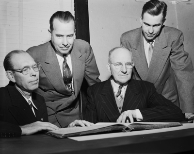Church Teamwork - These four men are among those keeping the ball rolling at Grace Lutheran Church, currently without a pastor. Left to right, Harvery Linton, C. M. Thelin, Eric Forsell and Paul Larson.