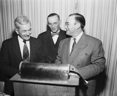 Plans to put West Texas further out in front in 1952 are discussed by Dr. Sidney L. Miller of Pittsburgh University, currently conducting an economic survey of West Texas, President Frank H. Kelley of the West Texas Chamber of Commerce, and Fred H. Husbands, executive vice president and general manager, left to right.