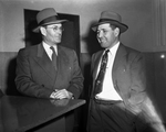 C. G. Baker, left, manager of the Oklahoma State Fair and Exposition, and Bo Belcher, promotion manager, were visitors at the Southwestern Exposition and Fat Stock Show. The Oklahomans are planning a new plant and were picking up building ideas on the stock show grounds. They praised the livestock facilities here as the finest they had seen. Published in Fort Worth Star-Telegram evening edition February 1, 1952.