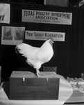 Best male entered in standard breed competition of the Southwestern Exposition and Fat Stock Show poultry division was this Plymouth Rock owned by Earl H. Kelly of Stafford. Published in Fort Worth Star-Telegram morning edition February 3, 1952.