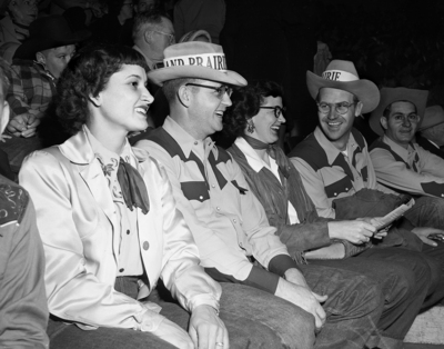 Rodeo Guests-Part of the Grand Prairie Day delegation to the Southwestern Exposition and Fat Stock Show. They are, left to right, Mrs. M. R. Bittick, M. R. Bittick, Mrs. Bob Moore, and Bob Moore. Published in Fort Worth Star-Telegram morning edition February 4, 1952.