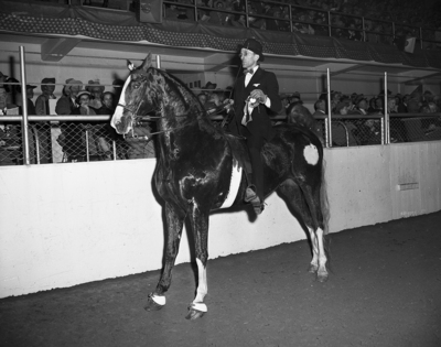 The Replica, owned by Miss Mary Jane McGrath of River Forest, and ridden by Art Simmons of Mexico, won the $1,250 five-gaited champion stake at the Southwestern Exposition and Fat Stock Show. Published in Fort Worth Star-Telegram evening edition February 4, 1952.