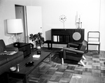 Contemporary Apartment. Tailored to masculine living. No extraneous objects to absorb space unless they perform a function. A living room area with simple household furniture.