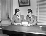 Ed Brinson, royal vizier of Azotos Temple 175, Dramatic Order Knights of Khorassan, left, talks over plans for a district ceremonial here with V. S. Burleson of Sherman, district deputy imperial prince.
