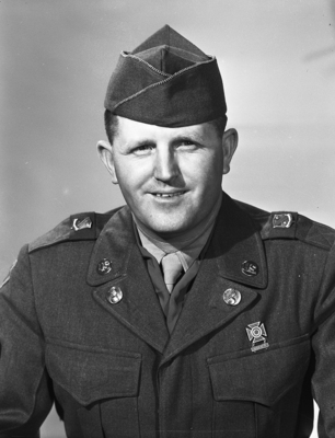 Portrait of First Sergeant Holland L. Hardin of Headquarters & Headquarters Company, 749th Armored Ordnance Maintenance Battalion, Texas National Guard, has been named the unit's "outstanding soldier of 1951" for his 100 per cent attendance record, enlistment of eight men and "expert" qualification with the pistol.