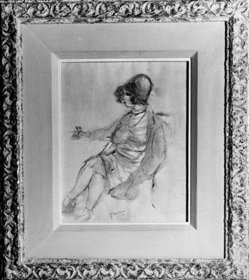 This Jules Pascin watercolor, "Young Woman with a Wine Glass,"is one of the newest additions to the art collection of Mr. and Mrs. Sam B. Cantey III. It will be among the works seen in an exhibition of the collection, which opens in the art galleries at Texas State College for Women.