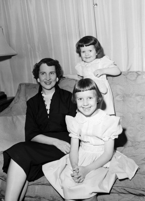 Mrs. Franciel Petitfils Manning, wife of Mr. Earnest Claude Manning Junior, is the new president of the Friday Lecture Club for the 1950-1951 season. With her are her two daughters, Mary, the older, and Ann. They lived at 512 N. Bailey.