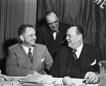 Three Chamber of Commerce executives get together at the National Affairs Area Conference sponsored by their groups here. Left to right, Arch N. Booth of Washington, principal speaker and executive vice president of the U. S. chamber; President Berl E. Godfrey of the Fort Worth chamber, and D. A. Hulcy of Dallas, president of the U. S. chamber.