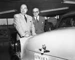 John F. Giles Junior, left, of Dallas, and George O. Hackett of Detroit were in Fort Worth visiting Nicolson-Jones Motor Company during the first showing of the new Lincoln. Both men are officials with the Lincoln-Mercury division of the Ford Motor Company.