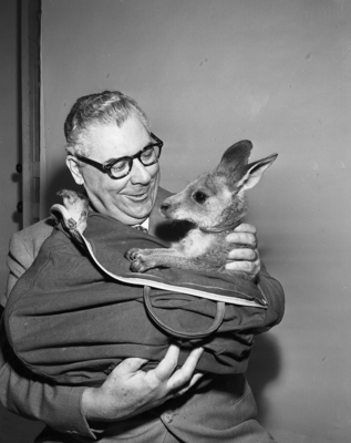 Blake McVeigh with 10-month-old kangaroo, "Joey Roo." Joey Roo is here to publicize the new movie, "Kangaroo."
