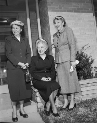 Mrs. Maud Rogers of New York, center, field worker for the Planned Parenthood Federation of America, visited the Fort Worth Planned Parenthood clinic with its president, Mrs. R. D. Goodrich, left, and Mrs. Dorothy Stricker of Austin, right, executive director of the Texas Planned Parenthood League.
