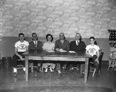 All phases of the Youth Men's Christian Association (YMCA) program will be reported through a panel at the association's annual meeting. Panel participants shown are, left to right, Jerry Wood, John Daniel, Miss Jo Ann Vermillion, Harry Phillips, W. C. Dietz and Walter Ruby. Not shown are J. M. Rawls and his son, Ronnie, and Buddy Blocker.