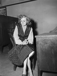 As a husband and father - a robbery suspect - lies wounded in a hospital after a gun battle here in which one detective was slain and two others wounded. His wife, Mrs. Doris Faye Barber waits to be fingerprinted and questioned at the police station.