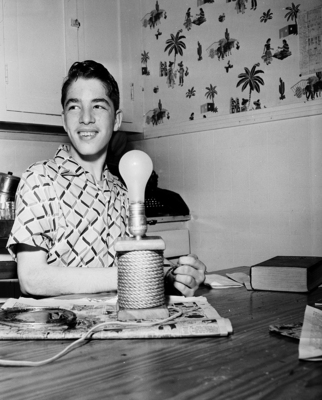 Purchase of Easter Seals from the Crippled Children's Society of Fort Worth will help continue occupational therapy such as this lamp being made by Robert Whitaker, 15, Ernest Parker Junior High School student, at the Cerebral Palsy Treatment Center, 2210 Hemphill.
