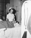 Student Nurse Barbara Tidwell watches Robert Barber, 26, who killed city Detective Henry Cleveland and wounded another Fort Worth detective and one from Dallas. A bullet pierced Barber's chest.