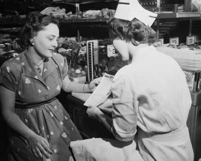 Mrs. Norma Nordin, left, is shown filling out a questionnaire for Mrs. Kathlene Barham, nurse.