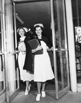 Miss Maxine Graham, left, and Mrs. Kathlene Barham return to the Cardiac Clinic to give data from survey to doctors for checking.