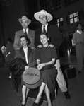 Included in the Panhandle delegation to New York were, standing, Irbin Wall and Dan Higgins as well as, seated, Mrs. Wall and Mrs. Higgins, all of Amarillo. Big hats of Texans enchanted blase New Yorkers but the feminine contingent from Texas went for the Fifth Avenue millinery, as witness the hat box.