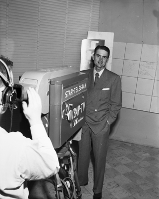 Paul Richards, squares off with TV camera.