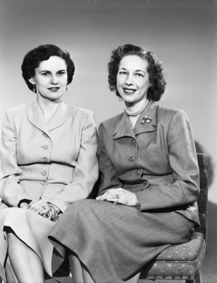Mrs. Al W. Whitlock, 3934 Collinwood, left, and Mrs. J. G. Wilkinson, 5027 Birchman, officers in the junior group of the Mary Isham Keith Chapter, DAR, will be pages at state conference of DAR chapters in Waco March 10-13. 1952.