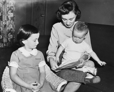 This picture of the family of Major George A. Davis Junior, presumed killed in a Korean air battle, was taken on his 31st birthday in November - the day he became America's fifth jet ace. His wife is with their two children, Mary Margaret, 7, and George III, then 18 months old.